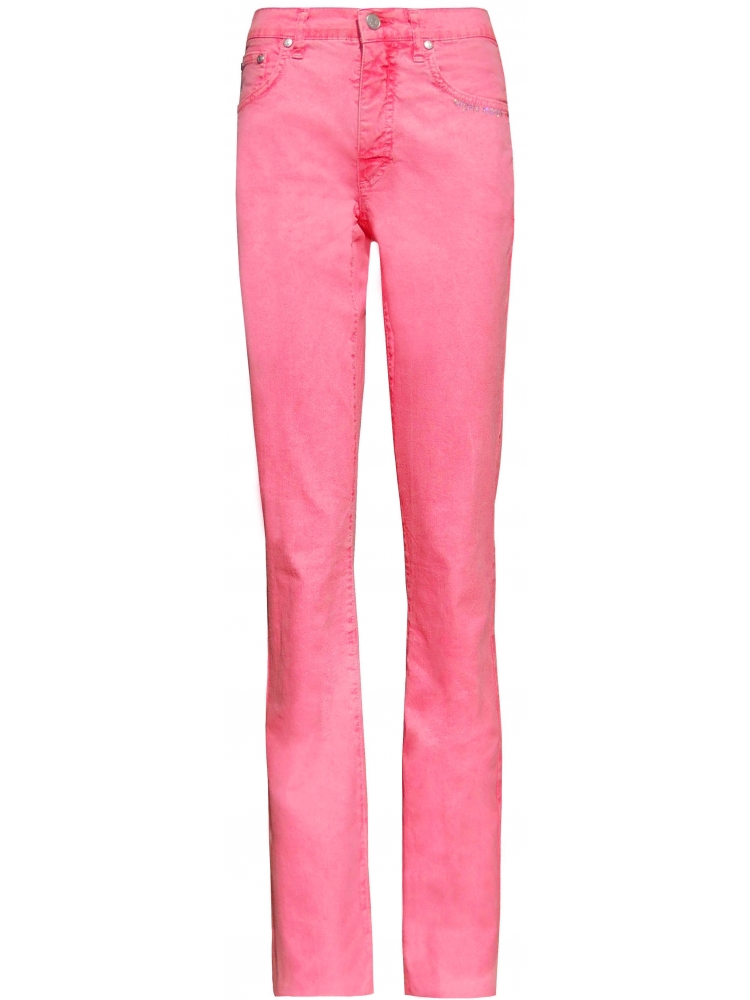 Angelo Marani bright pink jeans, High waisted, 5 pockets, Straight line, Fastens with zip and logo stamped button, Silver hardware, Angelo Marani logo in rhinestones, Belt loops