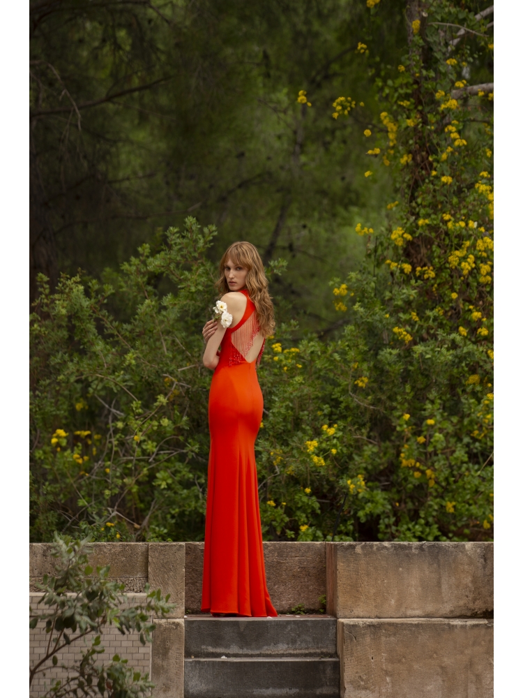 Maestri orange dress with open back